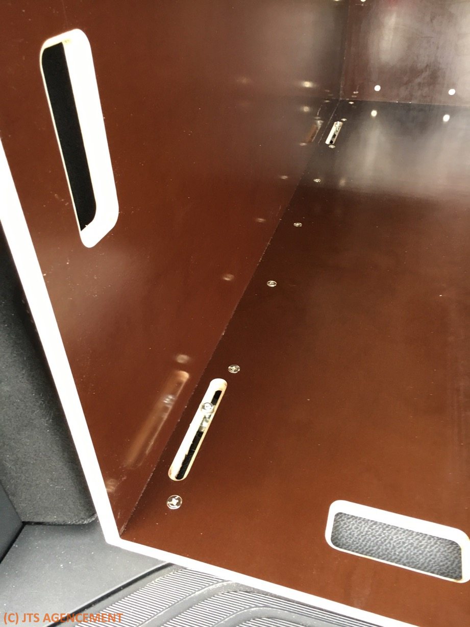 Pour protéger l’intérieur de son véhicule, notre client souhaitait un petit aménagement lui permettant d’éviter les frottements lors des chargements et déchargements de son matériel professionnel. Pour plus de souplesse, ce caisson est démontable et peut se ranger très facilement. Pour respecter les normes de sécurité, il est boulonné au châssis du véhicule par quatre ancrages normalisés.