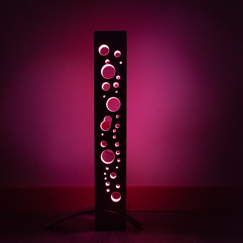 La résine epoxy permet la diffusion douce de la lumière depuis l’intérieur du luminaire. Côté éclairage, le luminaire est fourni avec une télécommande qui permet de choisir la couleur ou l’intensité de la lumière. Plusieurs programmes permettent également d’animer cet objet